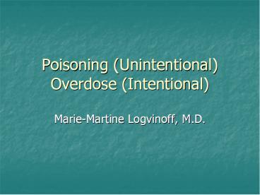 Poisoning Unintentional Overdose Intentional - PowerPoint PPT Presentation