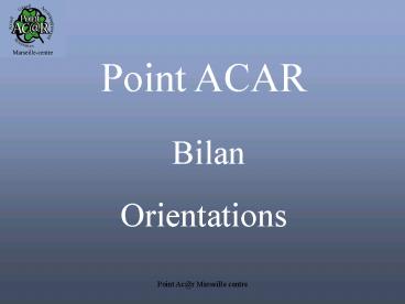 Point ACAR Bilan Orientations