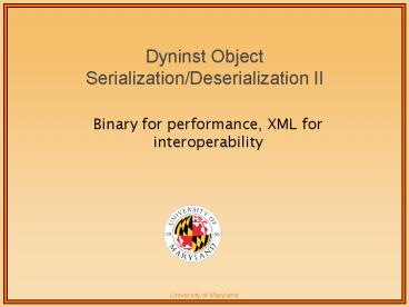 tools via an XML interface - XML spec resembles dyninst class hierarchy