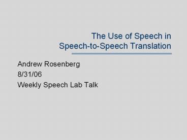 <Notice: Removed> The Use of Speech in SpeechtoSpeech Translation PowerPoint PPT Presentation
