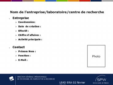 Nom de lentrepriselaboratoirecentre de recherche PowerPoint PPT Presentation