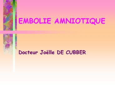 EMBOLIE AMNIOTIQUE PowerPoint PPT Presentation