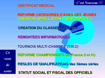 REFORME CHAMPIONNATS DE France (I et IV)