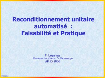 Title: Reconditionnement unitaire automatis : Faisabilit et Pratique
