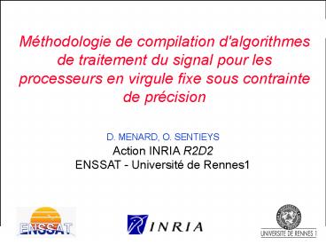 D. MENARD, O. SENTIEYS Action INRIA R2D2 ENSSAT