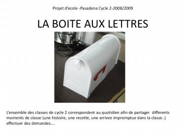 Projet decole -Pasadena Cycle 2-2008/2009 LA