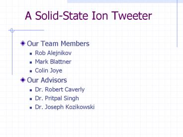 A SolidState Ion Tweeter PowerPoint PPT Presentation