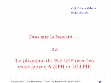 1Duo sur la beauté .ou La physique du B à LEP
