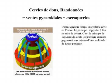 1Cercles de dons, Randonnées ventes pyramidales