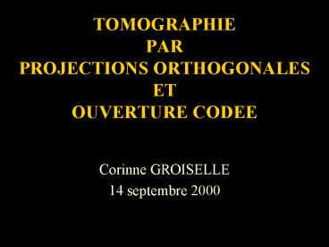 Title: TOMOGRAPHIE PAR PROJECTIONS ORTHOGONALES ET OUVERTURE CODEE