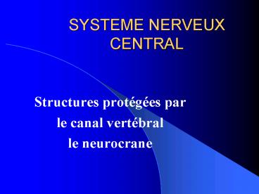 SYSTEME NERVEUX CENTRAL PowerPoint PPT Presentation
