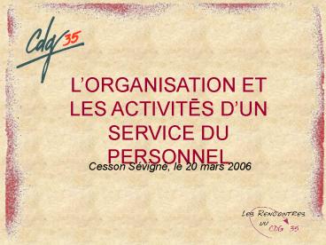 1LORGANISATION ET LES ACTIVITES DUN SERVICE DU