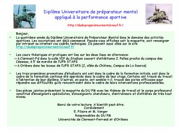 http//dudepreparateurmental.neuf.fr - Les cours théoriques et pratiques ont lieu sur