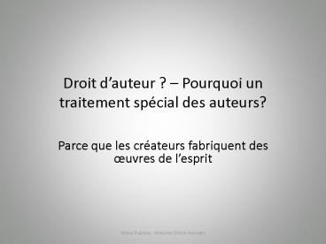 Droit dauteur Pourquoi un traitement spcial des auteurs PowerPoint PPT Presentation