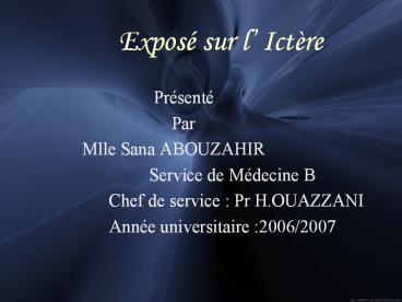 1 Exposé sur l Ictère