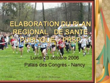 Title: ELABORATION DU PLAN REGIONAL DE SANTE PUBLIQUE PRSP