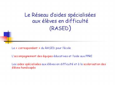correspondant RASED il établit la demande