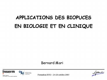 1APPLICATIONS DES BIOPUCES EN BIOLOGIE ET EN