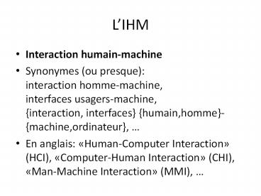 dans lIHM. - Sintéresse à comprendre les capacités humaines,