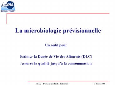1La microbiologie prévisionnelle