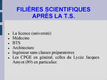 <Notice: Removed> FILIRES SCIENTIFIQUES APRS LA T'S' PowerPoint PPT Presentation