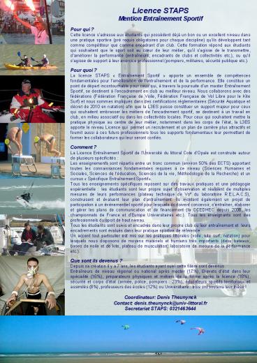 1 Licence STAPS Mention Entraînement Sportif Pour