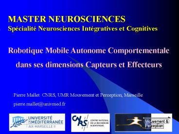 Title: MASTER NEUROSCIENCES Spcialit Neurosciences Intgratives et Cognitives