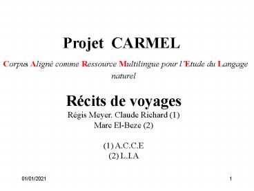 1Projet CARMEL Corpus Aligné comme Ressource