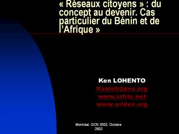 1 Réseaux citoyens du concept au devenir. Cas