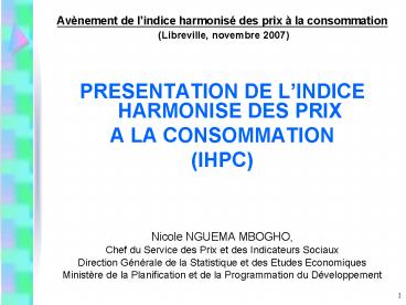Avnement de lindice harmonis des prix la consommation PowerPoint PPT Presentation