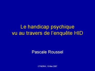 Le handicap psychique vu au travers de lenqute HID PowerPoint PPT Presentation