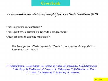 W.Baumjohann, L. Blomberg , R. Bruno, P. Canu,