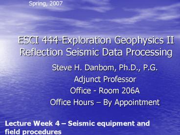 Title: ESCI 444Exploration Geophysics II Reflection Seismic Data Processing