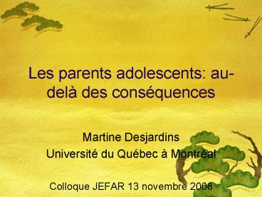 Les parents adolescents: audel des consquences PowerPoint PPT Presentation