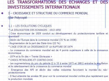 Title: LES TRANSFORMATIONS DES ECHANGES ET DES INVESTISSEMENTS INTERNATIONAUX