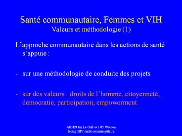 1Santé communautaire, Femmes et VIHValeurs et
