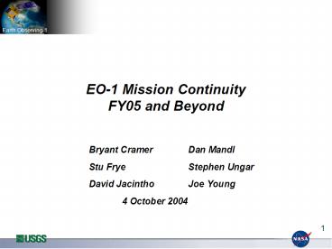 Title: EO1 Mission Continuity FY05 and Beyond