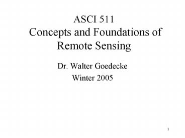 Title: ASCI 511 Concepts and Foundations of Remote Sensing