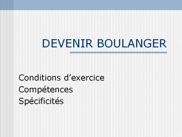 <Notice: Removed> DEVENIR BOULANGER PowerPoint PPT Presentation