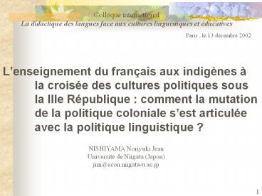 NISHIYAMA Noriyuki Jean Université de Niigata
