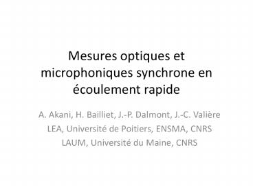 - A. Akani, H. Bailliet, J.-P. Dalmont, J.-C.