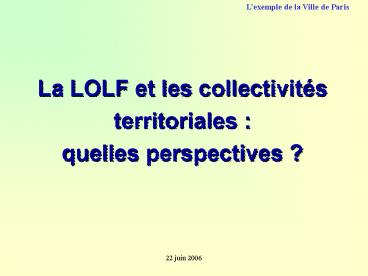 Title: La LOLF et les collectivits territoriales : quelles perspectives
