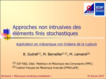 - (1) EDF RD, Dépt. Matériaux et Mécanique des
