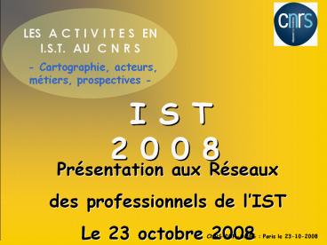 CNRS-DRH-OMES Paris le 23-10-2008