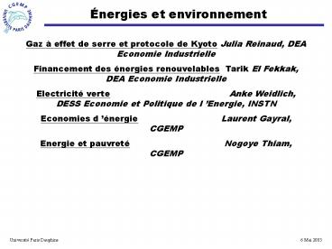 1Énergies et environnement
