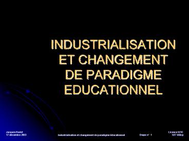 1INDUSTRIALISATIONET CHANGEMENT DE PARADIGME