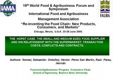 bilateral relationship with supermarkets. - Conflicts and high transaction costs emerge