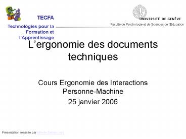 <Notice: Removed> Lergonomie des documents techniques PowerPoint PPT Presentation