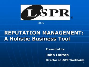 REPUTATION MANAGEMENT A Holistic Business Tool