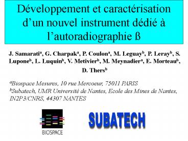 - J. Samaratia, G. Charpaka, P. Coulona, M.
